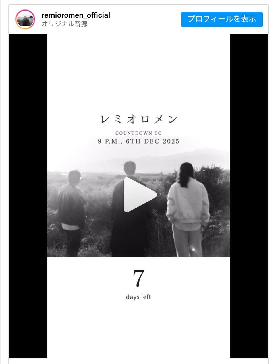 アカウントではこれまで過去楽曲の音源や映像が投稿されており、新たに公開されたのは、3人が後ろ姿で並ぶ写真とともに「7 days left...」「COUNTDOWN TO 9 P.M., 6TH DEC 2025」と記された画像。投稿内容からは、12月6日午後9時に向けて何らかの発表が予定されていることが示唆されている。