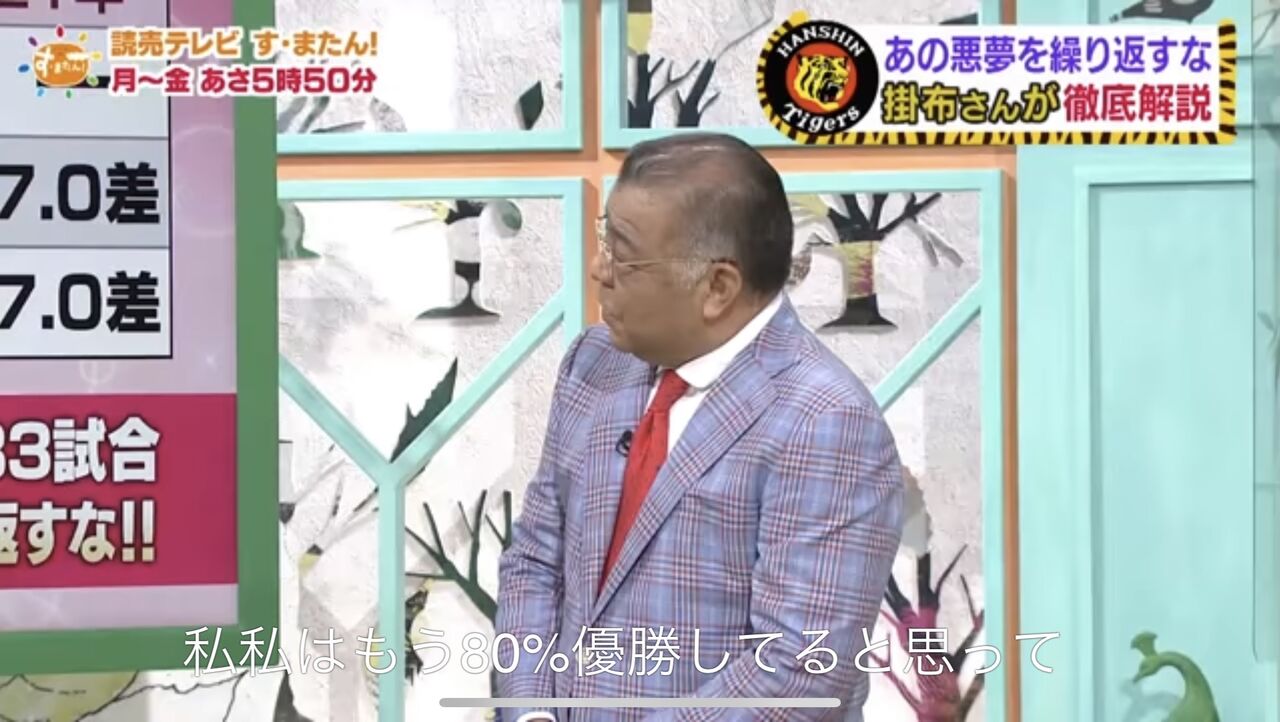 「あかん阪神優勝してまう」放送後→阪神 2勝5敗、巨人 7勝0敗
