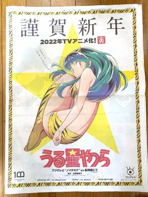 これは1月1日付け産経新聞の全面広告にて発表されたもの。紙面には「Happy New Yearだっちゃ」のセリフとともにヒロインのラムちゃんが描かれており、『2022年TVアニメ化!』『フジテレビ”ノイタミナ”ほか系列局にて』と告知されている。