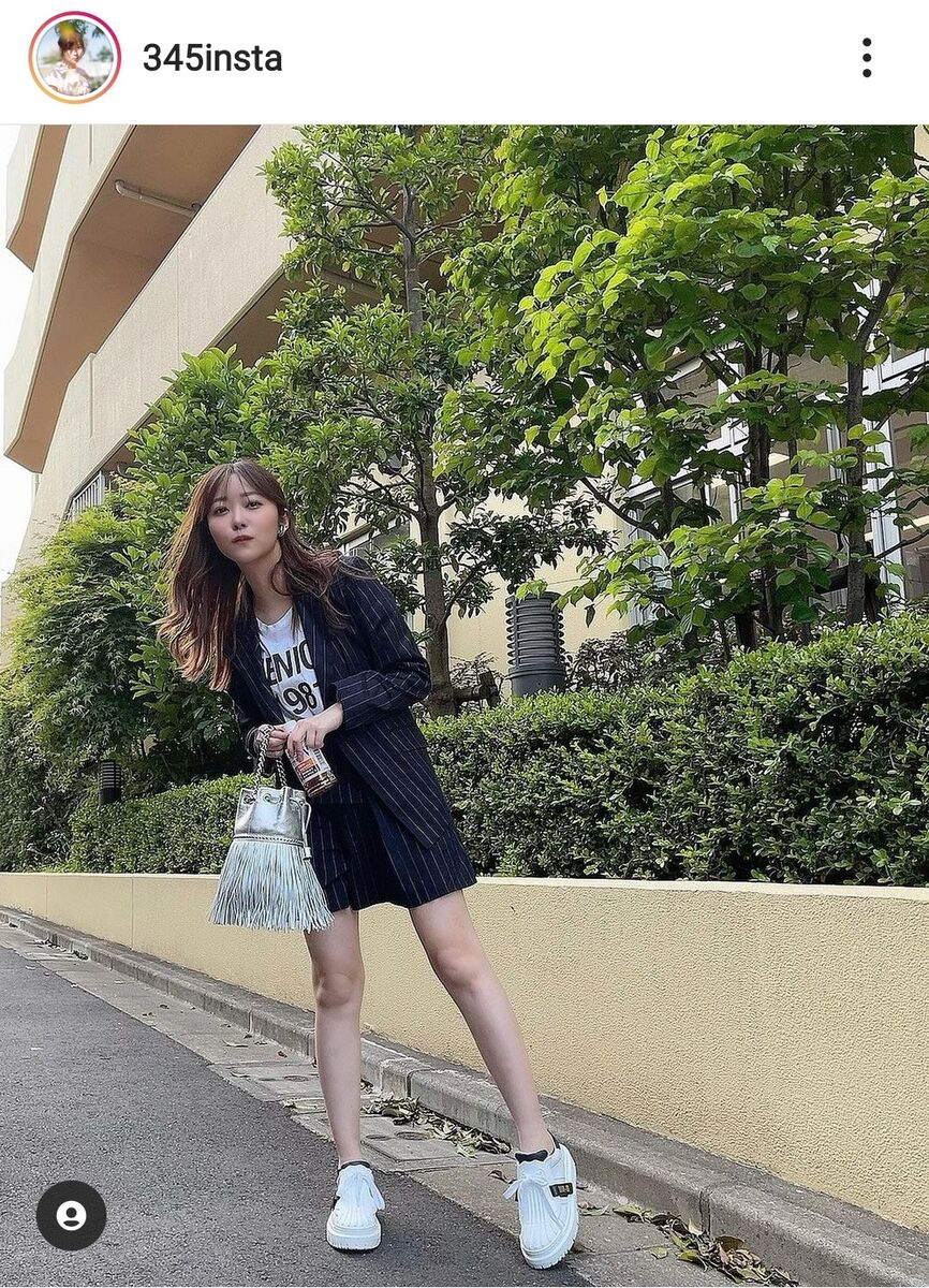 指原はミニ丈のボトムスとおそろいの柄のジャケットをはおり、足もとは白いスニーカーを着用。ペットボトルのお茶を持って散歩をしていることを報告し「#パンツにアイロンかけた方がいいと思います」とハッシュタグ付きのメッセージを付けた。