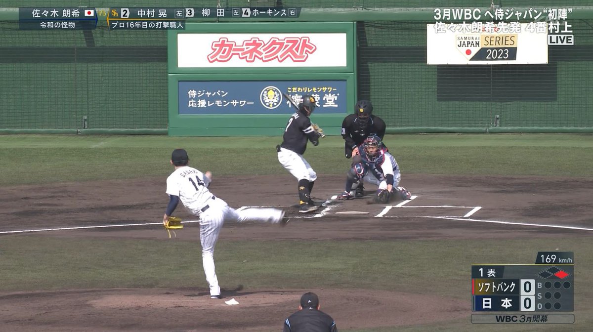 佐々木は序盤から160キロ超えの速球を連発する快調な立ち上がり。先頭の牧原大成に内野安打を許したものの、牧原の盗塁失敗などもあり難なく3人で封じ込んだ。続く2回も3人で抑えてマウンドを降りた。佐々木は2回を無失点、被安打1、3奪三振という内容だった。