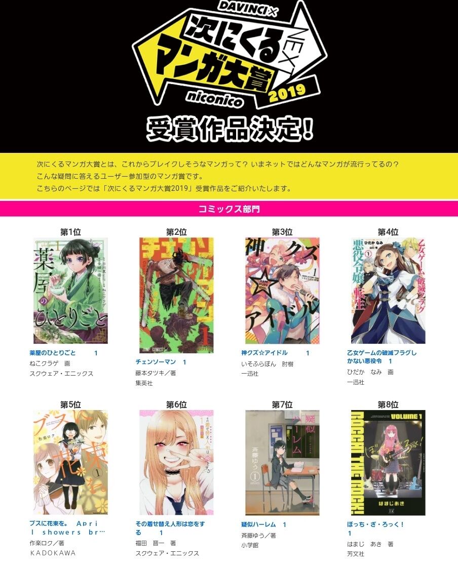 コミック部門ノミネート作品一覧